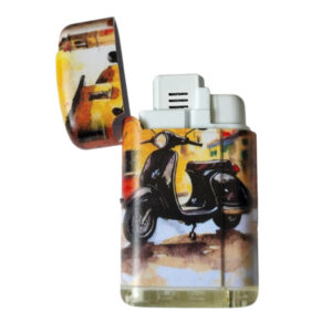 Leuke gasaansteker met een hondje met een koptelefoon en een bril op. Deze aansteker kun je navullen.